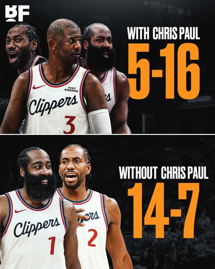 一切从保罗离队时说起!保罗在时快船5胜16负!保罗离队后14胜7负